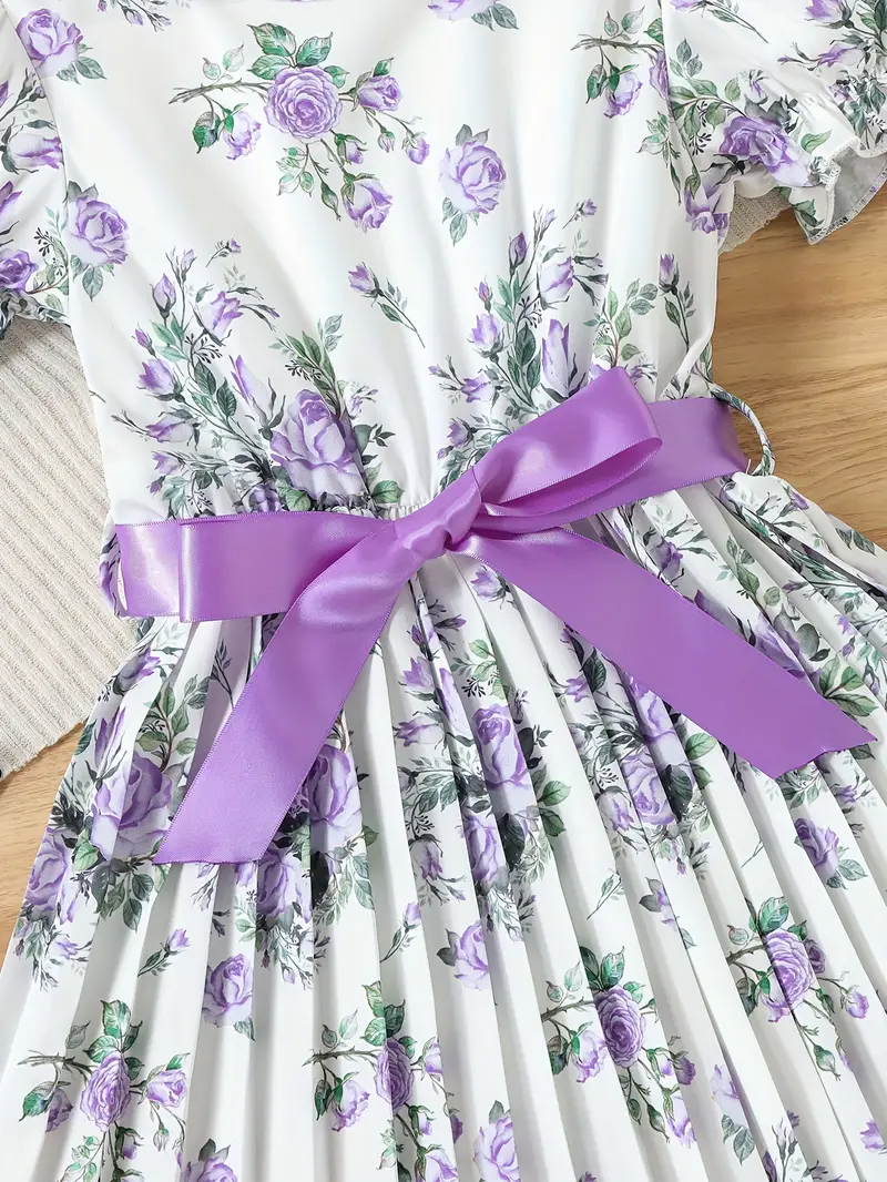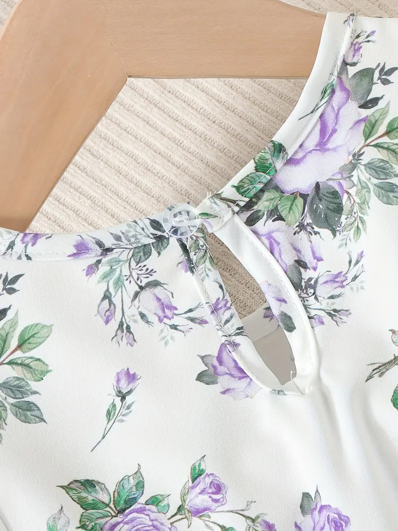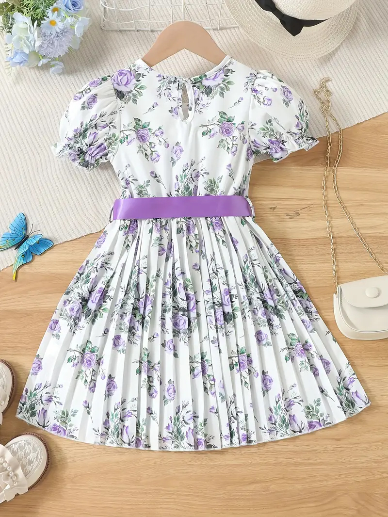 Girls' Floral Dress Puff Sleeve & Smocked Fitted Style for Casual Parties Party Dress For Baby Girls 1736