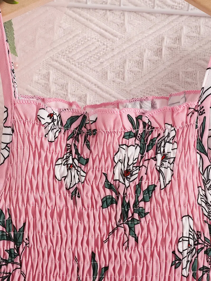 Baby Girl Floral Print Bow Front Cami Dress & Hat, (Baby Jama And Tupi) 1753