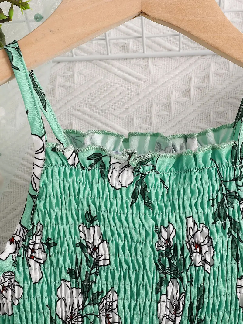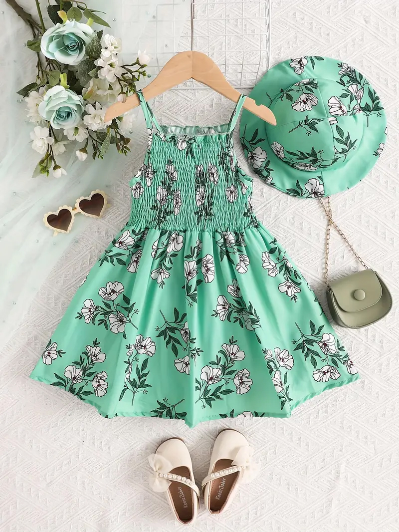 Baby Girl Floral Print Bow Front Cami Dress & Hat, (Baby Jama And Tupi) 1754