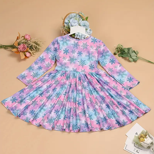 Girls Twirl Dress - Pink & Blue Floral Party Dress 1766