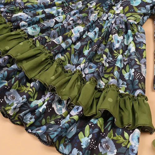 Girls Twirl Dress - Purple Floral Ruffle Party Dress with Buttons 1772