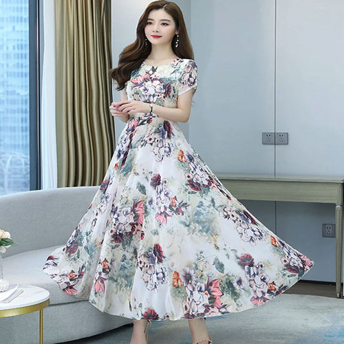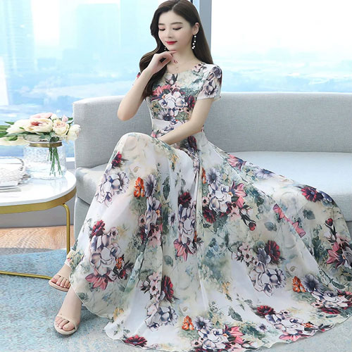 Party Evening Casual Print Maxi Gown Dress Short Sleeve For Women Dress 1601