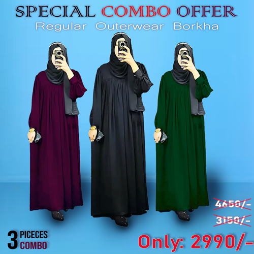 Regular Outerwear Borkha 3pcs Combo For Women Kuchi Body Design Outfit Abaya_B-635