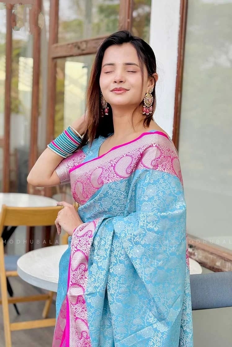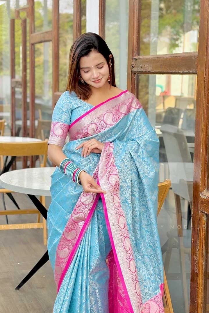 Shine in Style with Sleek Katan Saree and Blouse Piece 7011